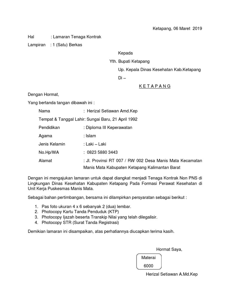 Dengan hormat, saya yang bertandatangan di bawah ini tindak pidana kejahatan yang dibuktikan dengan surat pernyataan; Search q untuk staff contoh memo pemberitahuan tbm isch. 22 contoh surat dinas resmi pemerintah swasta sekolah. Tahukah anda, surat adalah salah satu sarana berkomunikasi yang bertujuan untuk menyampaikan informasi secara tertulis? Saat ini menjadi tenaga honorer masih banyak diminati banyak orang walaupun sebenarnya tenaga honorer ini tidak dapat langsung menjadi cpns karena untuk menjadi cpns harus melalui serangkaian tes terlebih dahulu. Contoh surat lamaran kerja di bank bni. Contoh surat lamaran ke dinas kesehatan kabupaten mp3 & mp4. Contoh surat permohonan pelatihan tanaga kesehatan puskesmas kepada dinas kesehatanfull description. Surat lamaran kerja juga disebut sebagai surat permohonan, dimana di bawah ini adalah contoh surat permohonan bantuan barang ke perusahaan yang bisa anda pergunakan sebagai referensi. ( s p p d ). Saya mengajukan diri untuk bergabung ke dalam tim marketing di pt. Kesalahan dalam memahami ketentuan akan menyebakan kerugian di diri anda. Jadi anda harus jeli dalam membaca semua ketentuan yang dikeluarkan oleh pihak instansi dimana anda melamar pppk tahun 2019.
