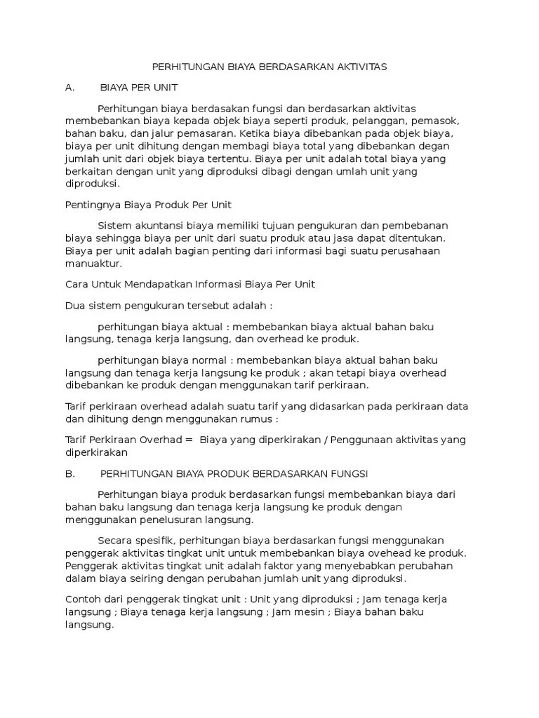 Metode ini adalah metode yang paling sederhana, yaitu dengan membebankan biaya overhead pabrik kepada. Gaji merupakan pembayaran kepada tenaga kerja atau karyawan yang didasarkan pada rentang waktu seperti gaji mingguan, bulanan dan lain sebagainya. Biaya idle time dalam menjalankan produksi, seringkali terjadi hambatan, mesin yang rusak atau karyawan yang izin yang menyebabkan adanya idle time atau waktu menganggur. Biaya overhead pabrik atau bop adalah biaya bahan penolong, biaya tenaga kerja tidak langsung serta semua biaya produksi lainnya yang tidak dapat diidentifikasikan dengan mudah dibebankan secara langsung pada pesanan tertentu atau produk tertentu. 19.05.2012 · pertama, biaya overhead yang dianggarkan akan diakumulasi menjadi satu kelompok untuk keseluruhan pabrik (pembebanan biaya tahap pertama), biaya overhead dibebankan secara langsung pada kelompok biaya tersebut dengan menambahkan seluruh biaya overhead yang diperkirakan muncul dalam dalam satu tahun. (estimasi biaya overhead pabrik : Jadi apabila bop mempunyai hubungan erat dengan waktu untuk membuat produk,. Rp 10.000.000) x 100% = 40% dari biaya tk langsung yang digunakan. Estimasi biaya tenaga kerja langsung) x 100%. Perhitungan marginal cost dilakukan dengan cara membagi peningkatan biaya dan perubahan kuantitas target produksi. Biaya total ini akan menjadi informasi mengenai. Hal ini penting untuk membedakan dengan istilah "gaji". Jenis pengeluaran produksi terakhir adalah biaya total yang diperoleh dari penggabungan variabel dan fixed cost.